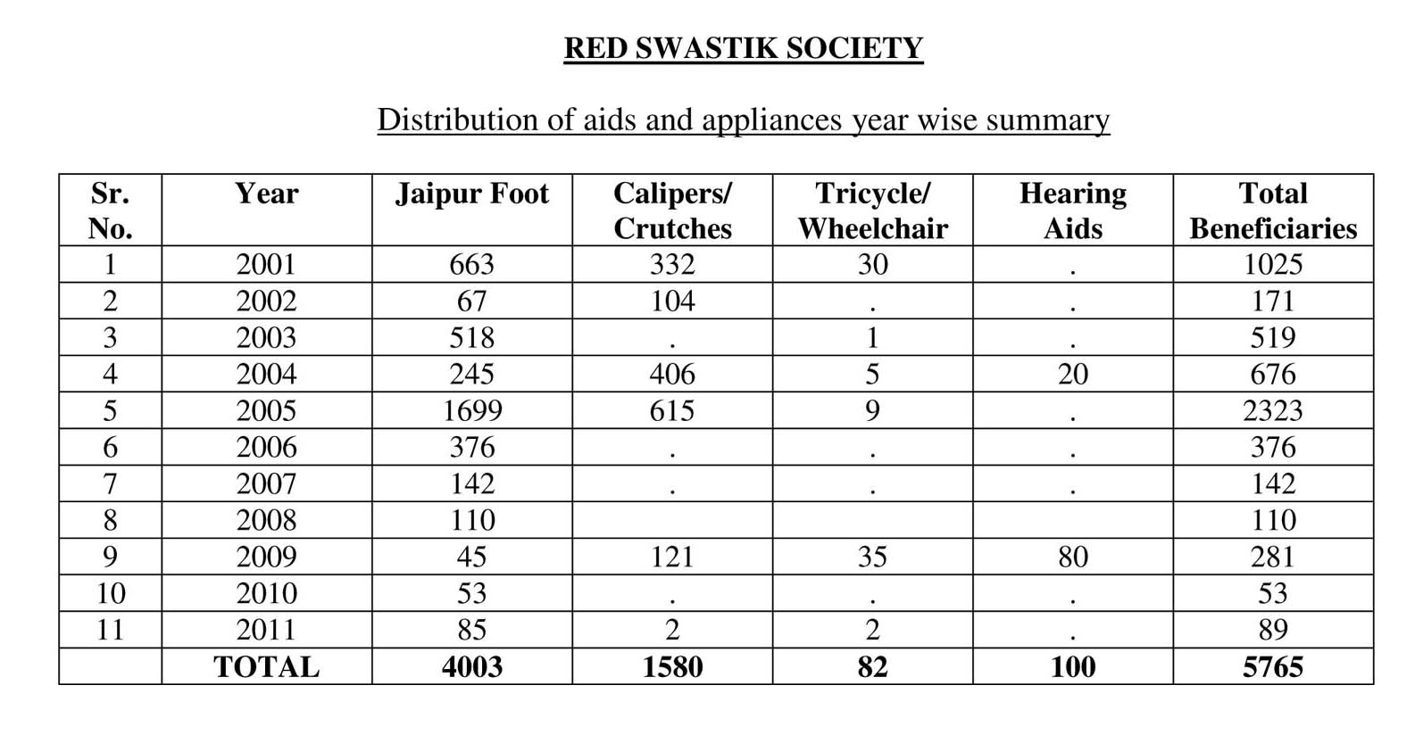 Statistics of work: Distribution of aids and appliances year wise summary. For More Detail